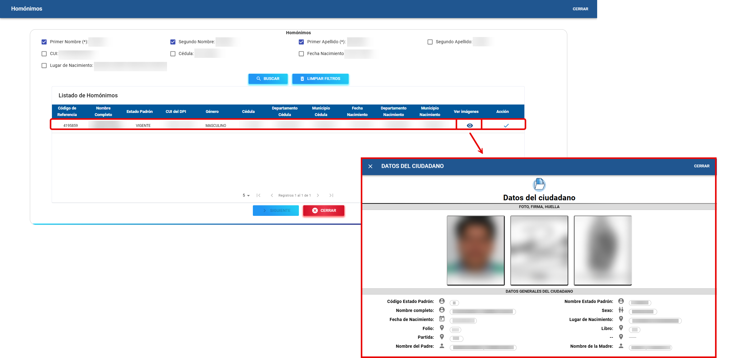 Determinar un registro homónimo para el ciudadano