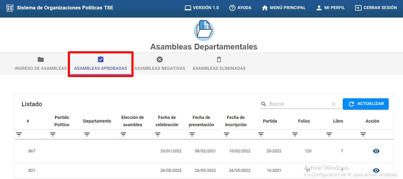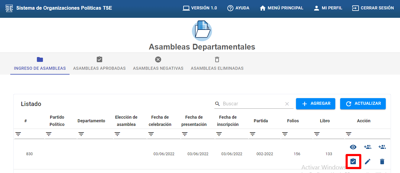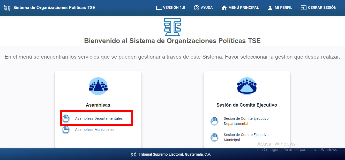 Seleccionar la opción de “Asambleas Departamentales”